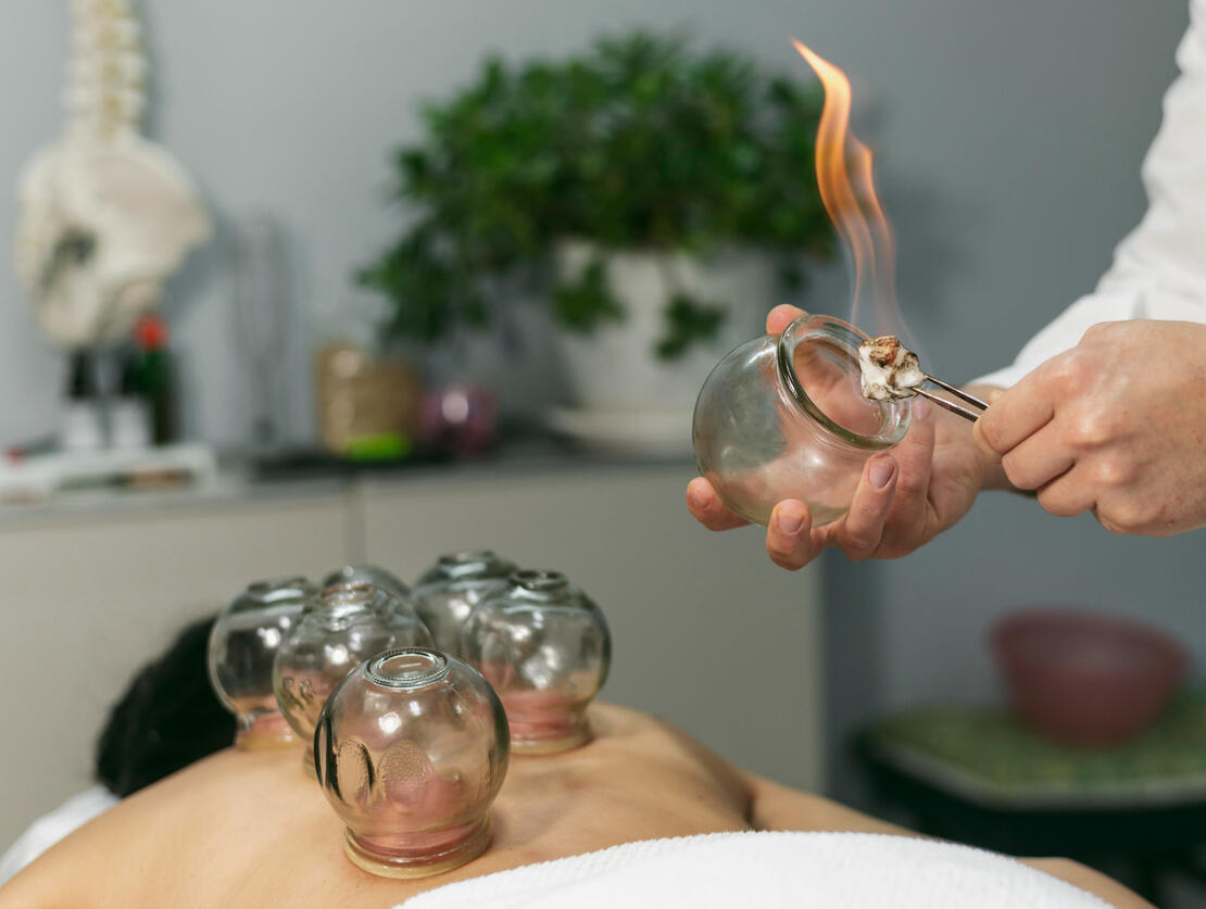 Fire cupping is a traditional therapy where a flame is briefly ignited inside a glass cup to heat the air, and then the cup is quickly placed on the skin. As the air cools inside the cup, it creates a vacuum that pulls the skin upward, increasing blood flow, loosening muscles, and promoting healing. This technique is used for relieving muscle pain, improving circulation, and detoxifying the body.